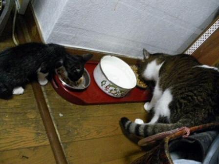 今ではとっても素敵なご家庭で、先住猫ちゃんと仲良くご飯を食べています。