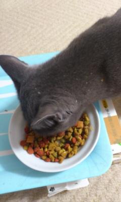 まだ私が鰹節入れているのにがっつくから首に鰹節が…(^_^;)