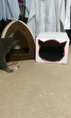 かあさんは先日、スーパーからもらった段ボール箱にぼくが入って遊ぶから、その箱で、ぼくの籠りハウスを作ってくれた。