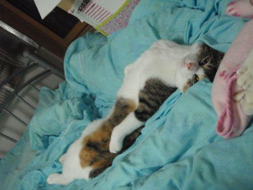 かりんちゃんは保護部屋でカーペットの下に隠れて全然出て来ずストレスMAX、預かりHさんを本気噛みしたりと大変な問題児・(´っω・。)・゚