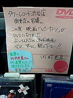 こちらは渋谷のタワレコに展示してある、内村監督の直筆コメント。