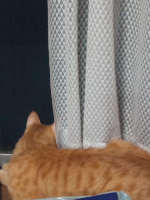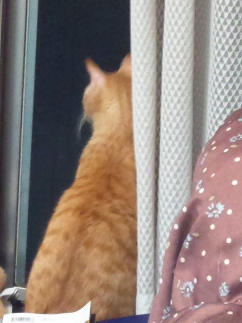 と言うか、外の猫ちゃんの目がキラリと光ったのです。