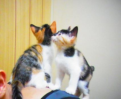 夜になると一段と活動的な三毛ちゃんず。