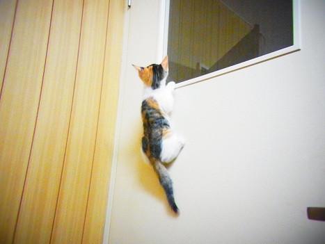 ドアの窓にくっきりちゃんがジャンプ!!