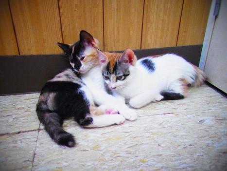 そんな暑いときでも、やっぱり仲良し三毛ちゃんず。