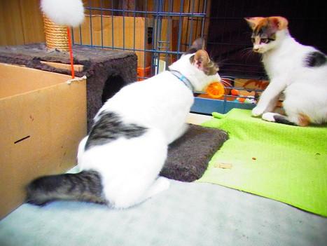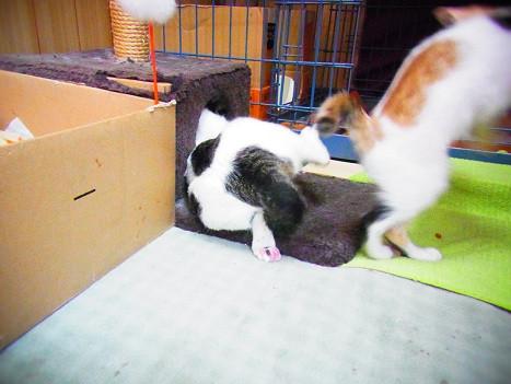 押しのける勢いだったので、白三毛ちゃんもびっくり。