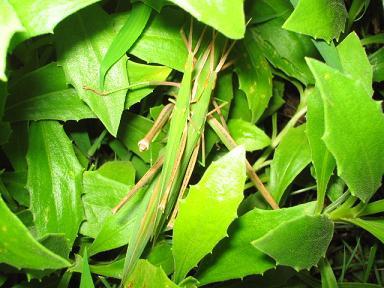 びっくり!バッタさんがバッタさんを おんぶしていました。