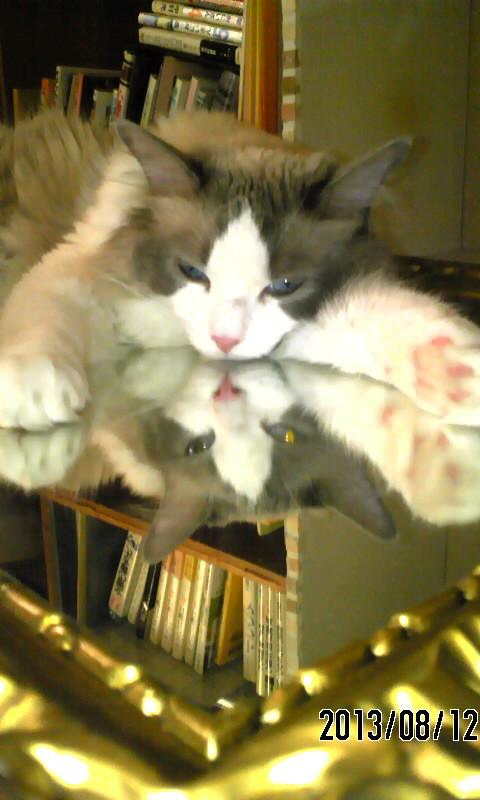うちではグー太郎があらゆる手段で涼もうと磨こうと思った鏡の上で寝てました。