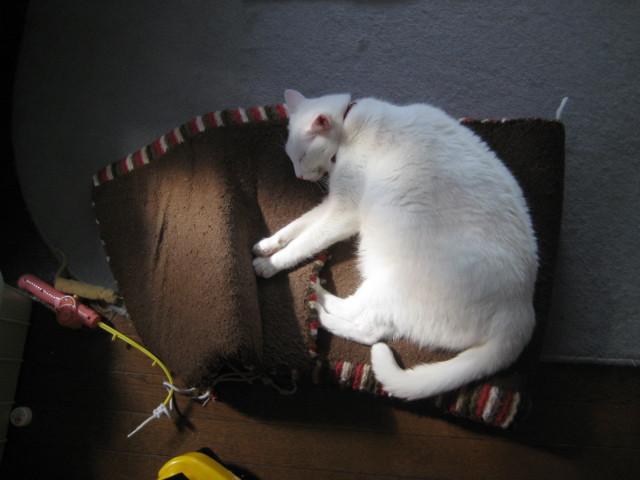 美々は最近このシートクッションで昨年作ったベッドで寝ることが多いです。(季々のお気に入りでもあります)