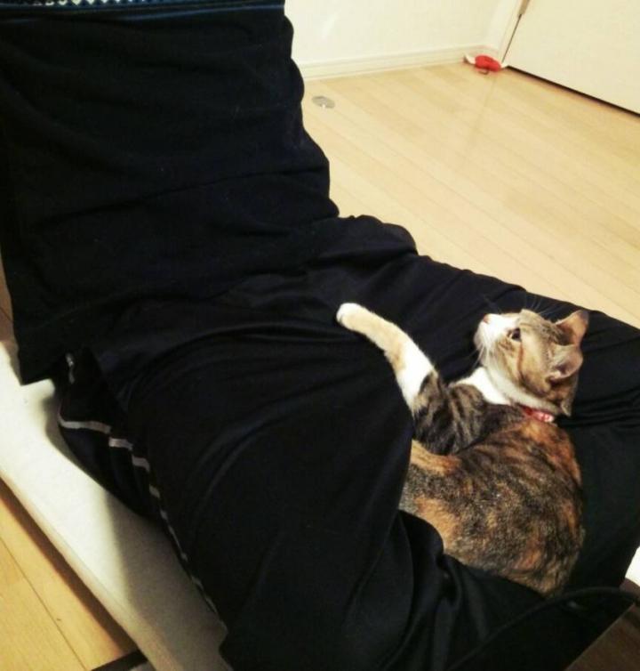 お父さんが帰ってくると必ずお父さんのあぐらへ。