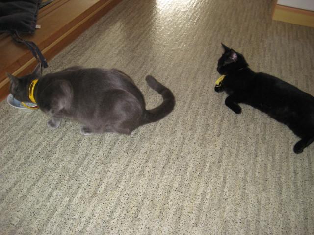 初日は確かにビビりまくり、テレビやテーブルやタンスの陰に隠れてばかりで、不安もありましたし、先住猫ともお互いシャーシャー唸りまくりでしたが、翌日からどんどん距離も縮まり、特に人にはベッタリん子・スリスリ魔で、「お前は犬か?」っていうくらいゴロンゴロンするし、いつか踏みそう^_^;