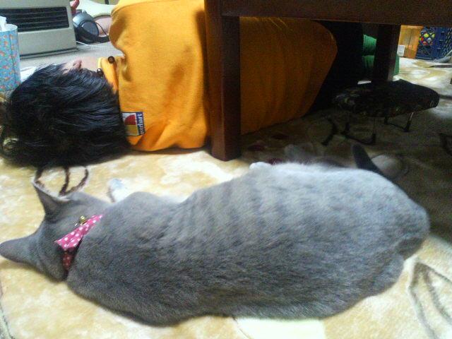 「パパさんと一緒に、黒ニャンコ人形のようにふて寝する!」