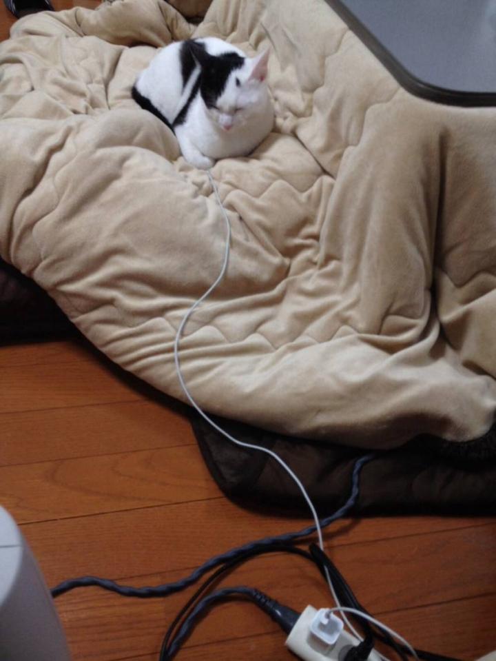 私の足元で爆睡していました。揺れが治まっても、微動だにせず。
