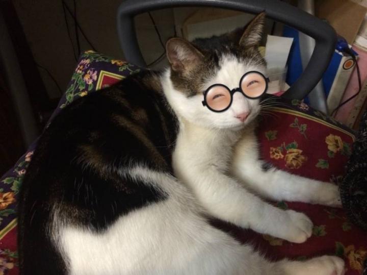 黒い毛の部分が髪型に見えるから、メガネが良く似合うんです。