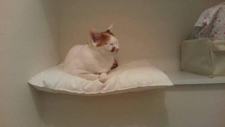 クッションが落ちそう、、ベッドでも置いちゃおうか。