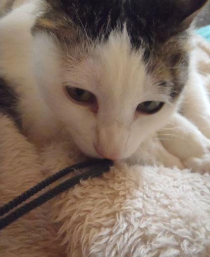 パーカーやジャージズボンの紐にじゃれつくので可愛いです。