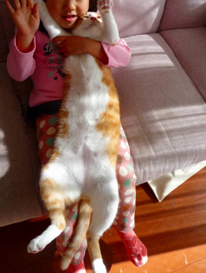 本来ネコはこういう姿勢にされるの嫌がると思うのですが