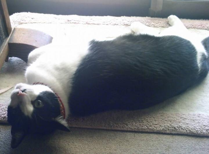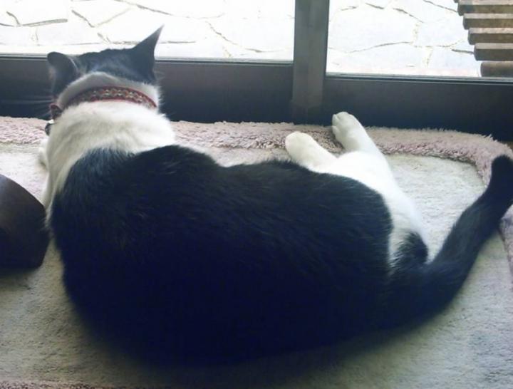 そしてサッシ戸のそばまで行ってくつろいでるハチ君でした。