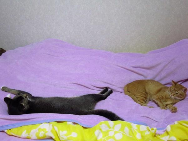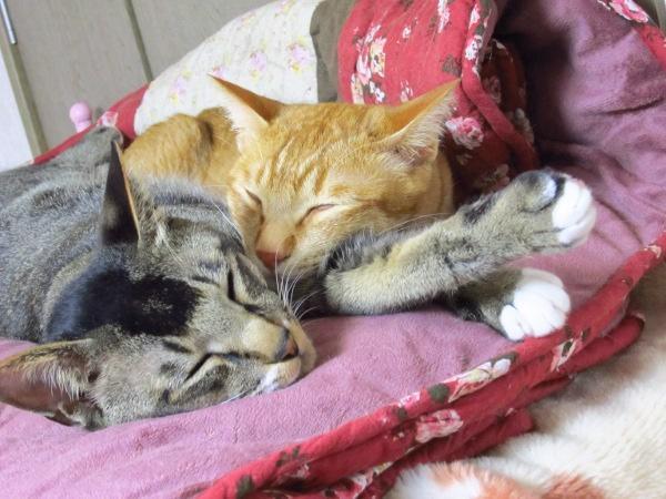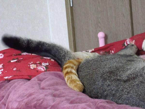 ぽんずさんはあじのりさんが大好きなのであじのりさんが寝ていると自分もいそいそとくっついて寝ています。夏場のあっつい時もくっついて寝ようとします。