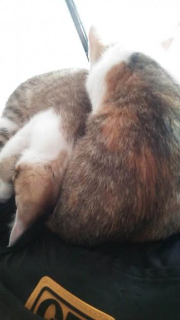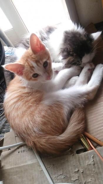 帰って来たらちゃんと部屋にいました、里親行く前に相棒の三毛と遊びたかったのかな。