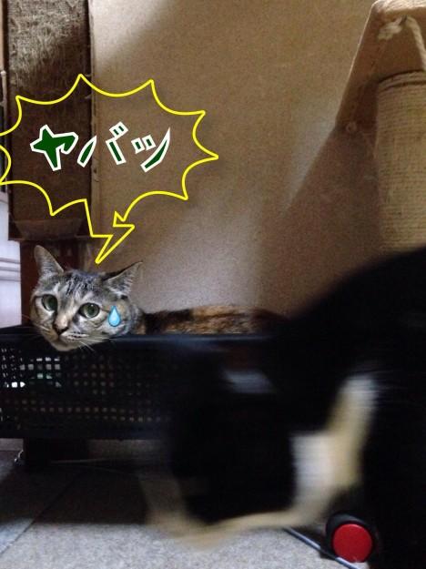 そのうち、キャットタワーの最上段のバスケットのように暑苦しいのに、この籠にダリ・ブナが一緒にINする日も近いだろう~