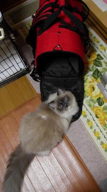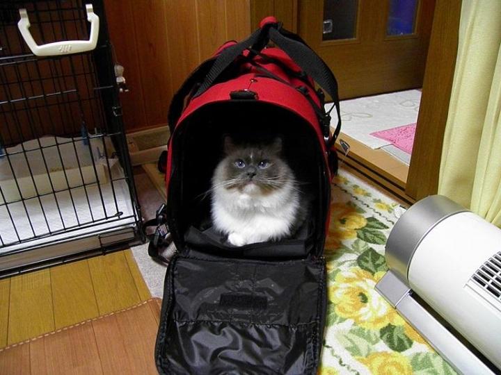 4個目のキャリーは一世愛用のものでしたので、ずっととっておくことにしましたが、最初の二つはちょっと使用感があったものの3個めは新品でしたけれど・・ポテコ二世には、小さすぎなのでした(笑)