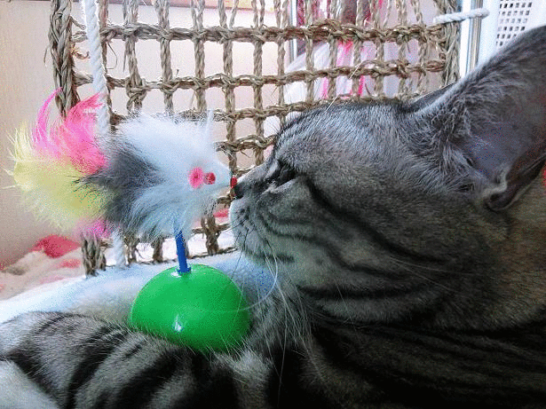 ↑玩具の匂いを嗅いでます。遊んでごらん、楽しいよ♪