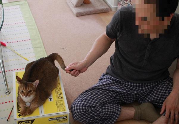 毎夜、足元で寝ているみ~ちょは、深夜1時半に設定の自動給餌器に合わせ