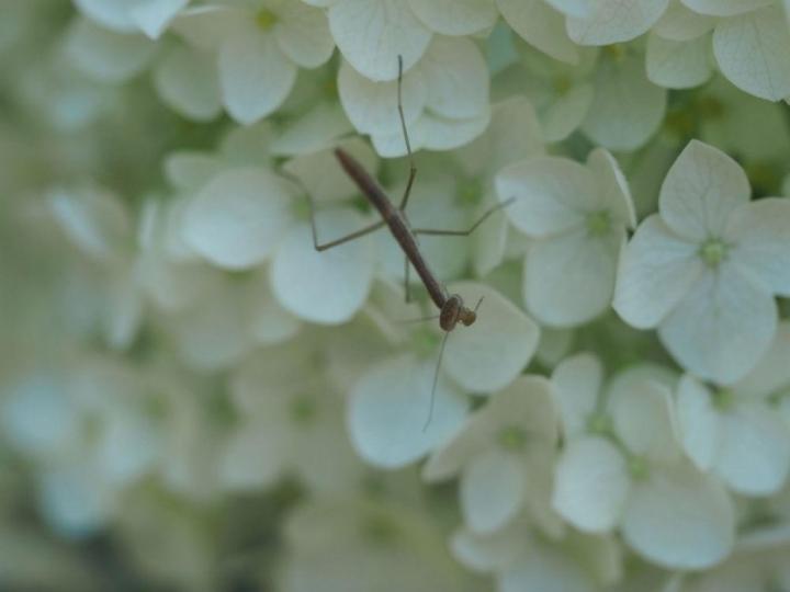 カマキリの子供が現れたので「そこで止まって〜」といいつつ撮影。