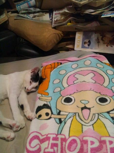 朝と夜と同じ場所(俺のベッド)で我が物顔で寛いでいて、本来の持ち主