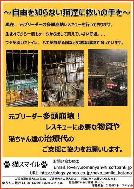 何とか自分達で捻出出来れば良いのですが頭数が多く、自分達だけでは全頭の治療費が捻出出来ない状態です。