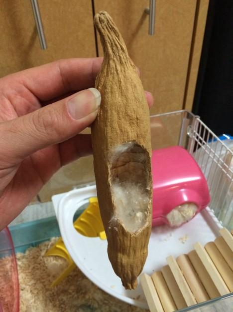 気に入ってくれたようで、殻?をガジガジ噛みつき