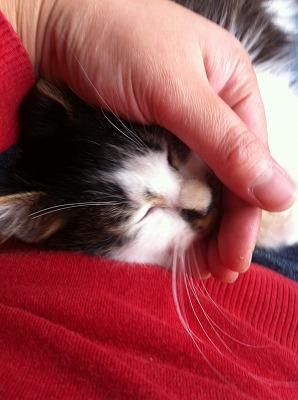 手の大きさと比べてわかるように、撫子ちゃんは小柄なにゃんこちゃんです。