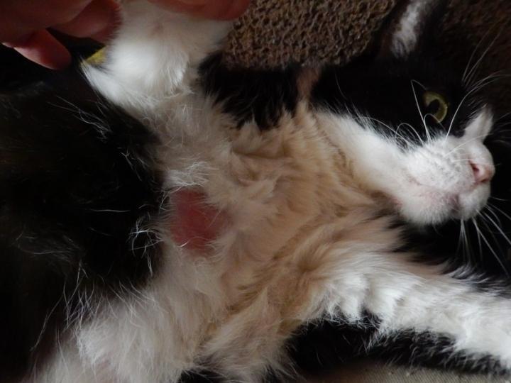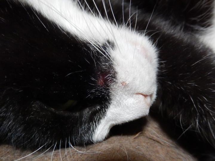 この前の外出でできたと思われる傷は、自分で引っ掻いて大きくなった。