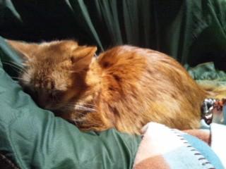 それまでも、ベッドの下の 丁度 頭の下あたりで眠ってたのですが、やはり[枕を並べて]状態は格別ですねぇ。スリゴロとは また違った触れ合いです。 欲を云えば、布団の中に入って欲しいですが、暑いのか重いのか、長くは続きません。 まぁ、愛猫の呼吸を感じながら眠れれば それで充分ですね(^^)v
