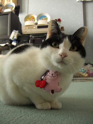 縫ぐるみ(猫のストラップ)とぶら下げてもらった時の写真です。