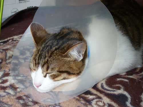エリザベスカラーを嫌がって暴れるので、鎮静剤を打ってあるそうなんだけど