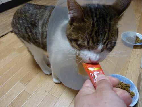 ちゅーるの匂いを嗅ぐと、ぺろぺろ舐めはじめました。