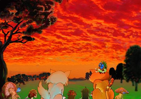 そしてゆうひは トイチくんやなかまたちをいつまでも あかく そめつづけていました。