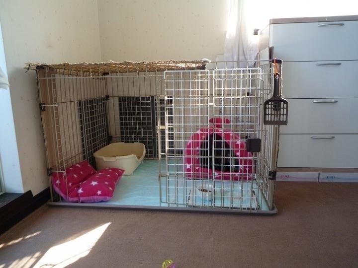 動物病院にいるときは狭いゲージの中で過ごしていたそうなので