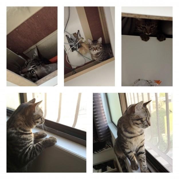 上の段の写真は、一時、ちゃたがいない!と必死に部屋を探しまわっていたら