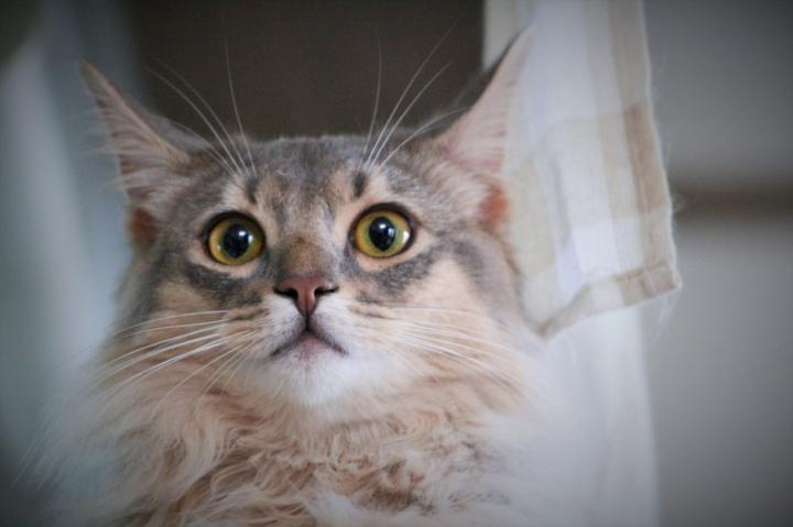 後ろで クレアの匂い嗅いで フレーメンしてる猫あり('◇')ゞ