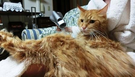 少し逃げ出そうとしましたが、前回よりも大人しく(諦めたんだろうな・・・)、乾かされました・・・