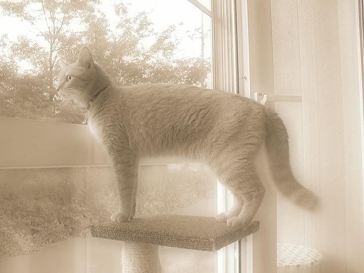 リュックもいつものように窓辺で外の景色を見てる・・。