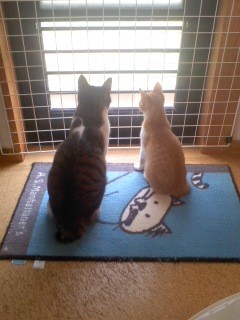 網戸にするともれなくニャンズが集まってきてお外観察。