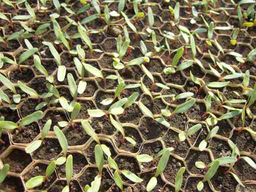 ので、一つのポットから3本も4本も芽が出ていたりして、間引き作業も大変だったのですが、今の種はピンクの栄養剤(活力剤?)がコーティングされているので、めったに2本も芽が出ていたりしないのですが、土に紛れていた雑草が一緒に芽吹いてくる事もあるのでそれを取り除く、というのがメインになっているのですが。