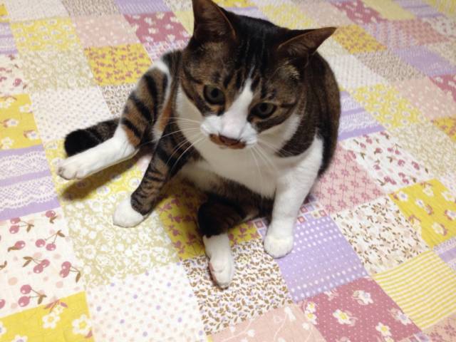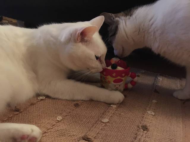 どこ行ってたの?ずっと こうして待ってたのに… そんな目で迎えられると つい おやつ! いっぱい あげちゃうね