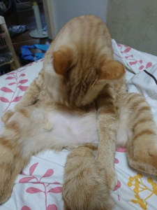 ひどいと お腹が赤くなるまでなめてました💦