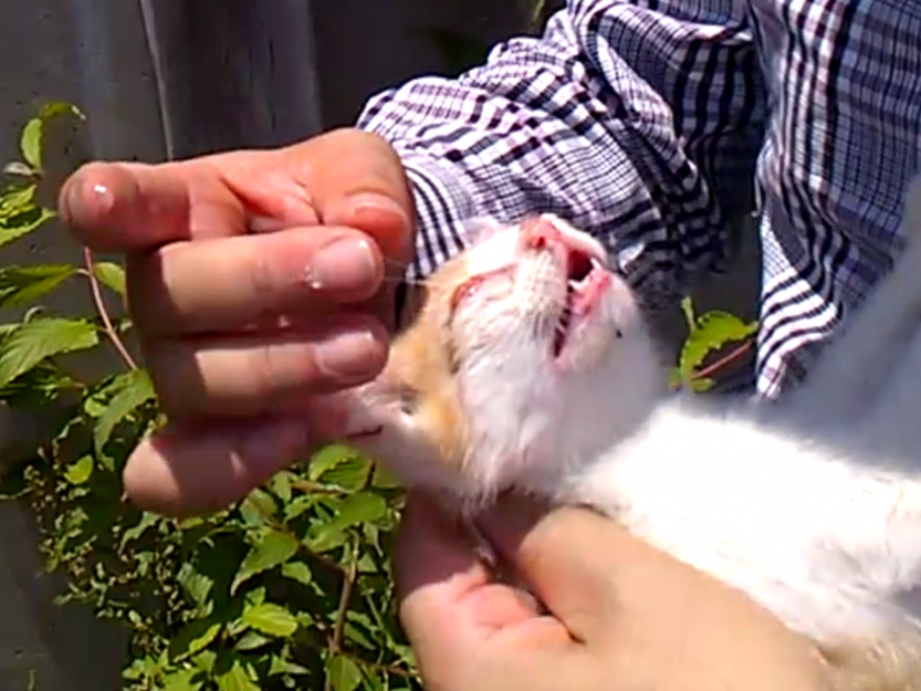 現在治療中の猫(野良の子猫)は、ほとんど目が潰れている状態です。