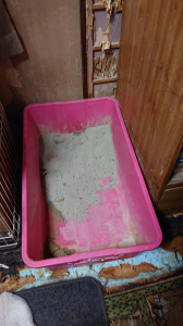 やはりトイレは二、三個置いておいたほうが良いんですね。トイレは一応外猫だったので自然に近いようにと砂にしてます。